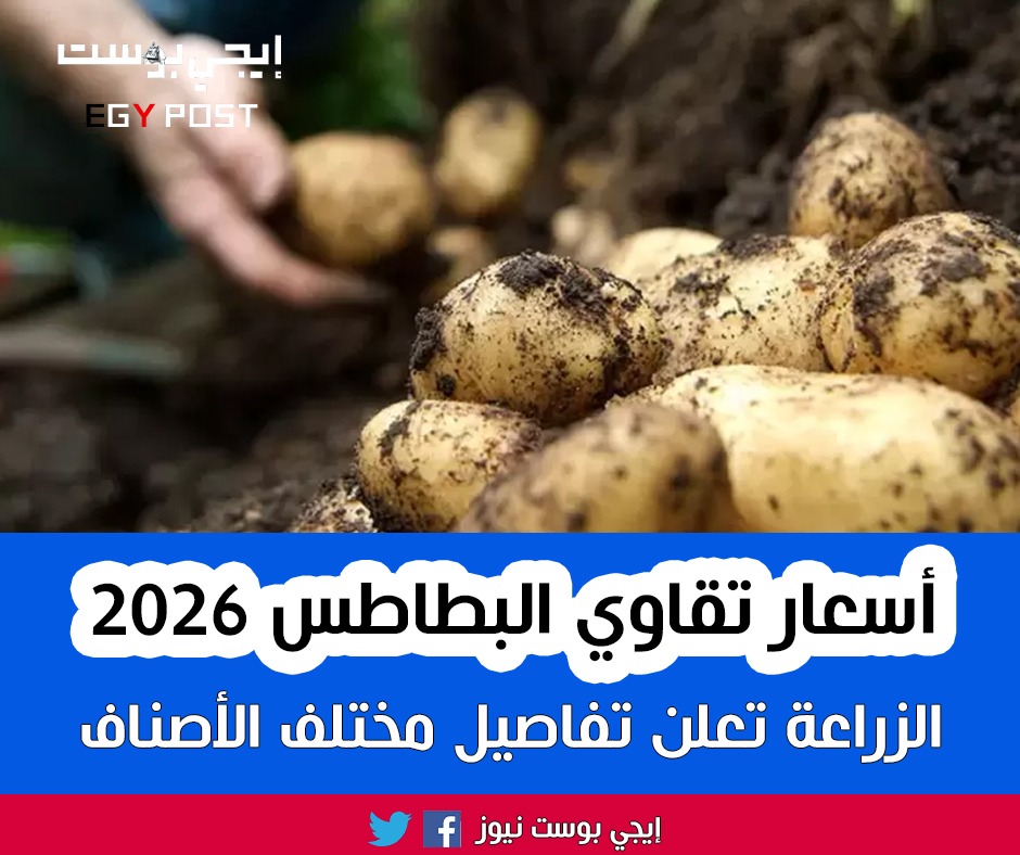 أسعار تقاوي البطاطس 2026 أعلنت عنه وزارة الزراعة مع بدء تسليم أولى دفعات التقاوي للمزارعين استعدادًا للموسم الزراعي الجديد.
