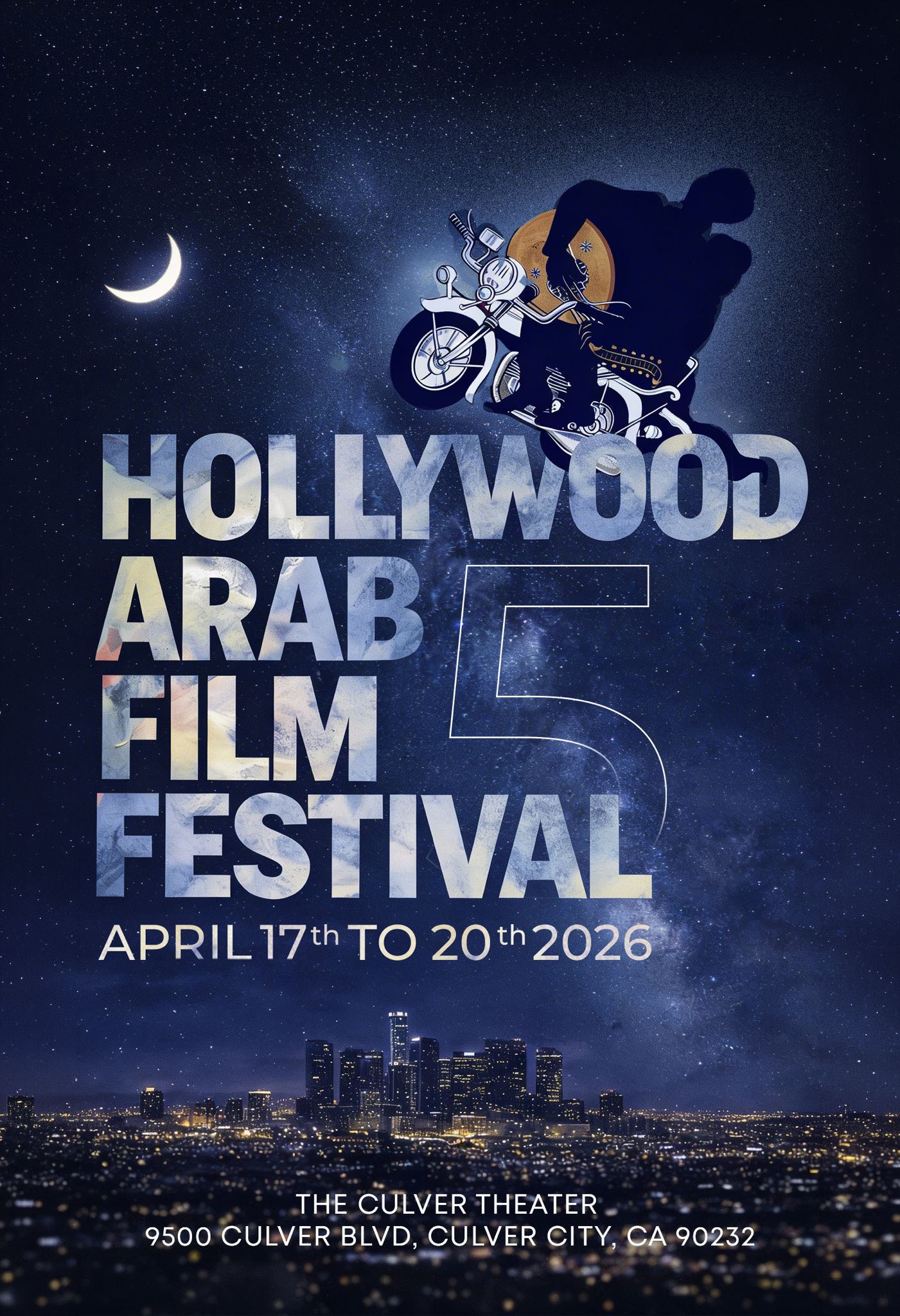 كشفت إدارة مهرجان هوليوود للفيلم العربي عن الملصق الرسمي للدورة الخامسة، التي من المقرر أن تقام في مدينة لوس أنجلوس خلال الفترة من 17 إلى 20 أبريل، وسط ترقب واسع من صُنّاع السينما والجمهور العربي في الولايات المتحدة الأمريكية.