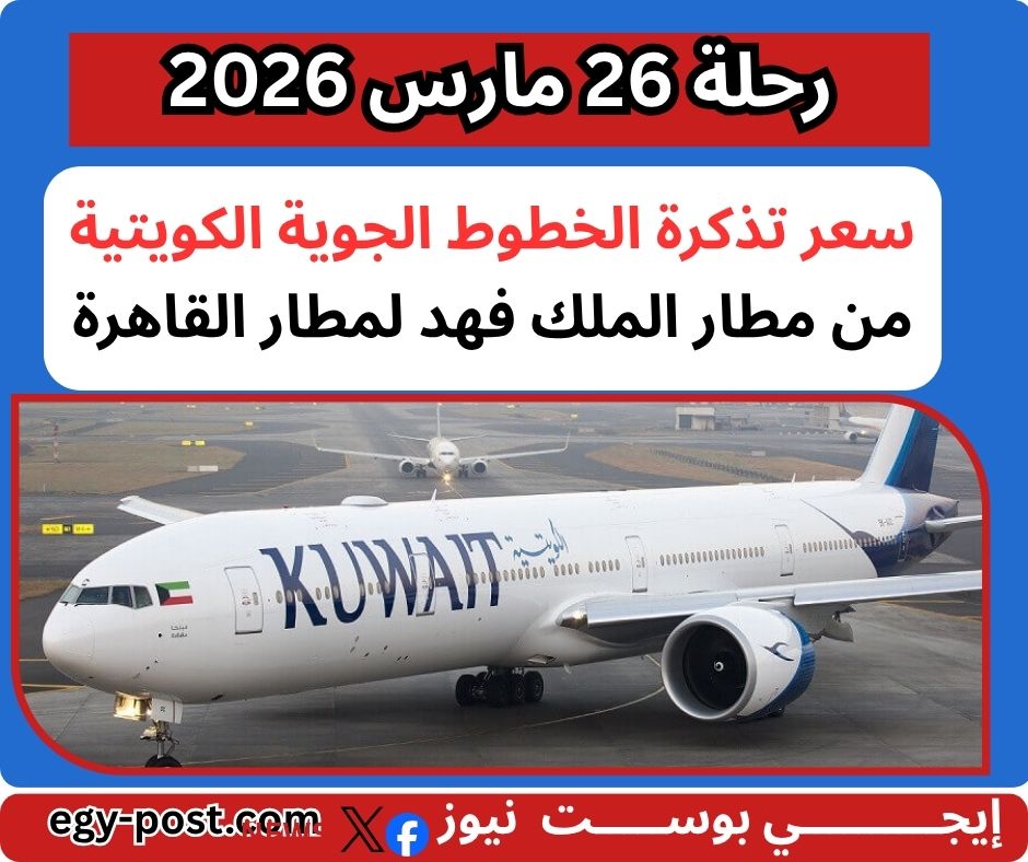 سعر تذكرة الخطوط الكويتية للقاهرة رحلة 26 مارس 2026