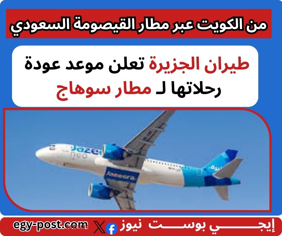 استأنفت شركة طيران الجزيرة تشغيل رحلاتها التجارية من وإلى مدينة سوهاج، عبر مطار القيصومة بالمملكة العربية السعودية، اعتبارًا من 29 مارس الجاري، في خطوة تستهدف تعزيز حركة السفر بين مصر والكويت.